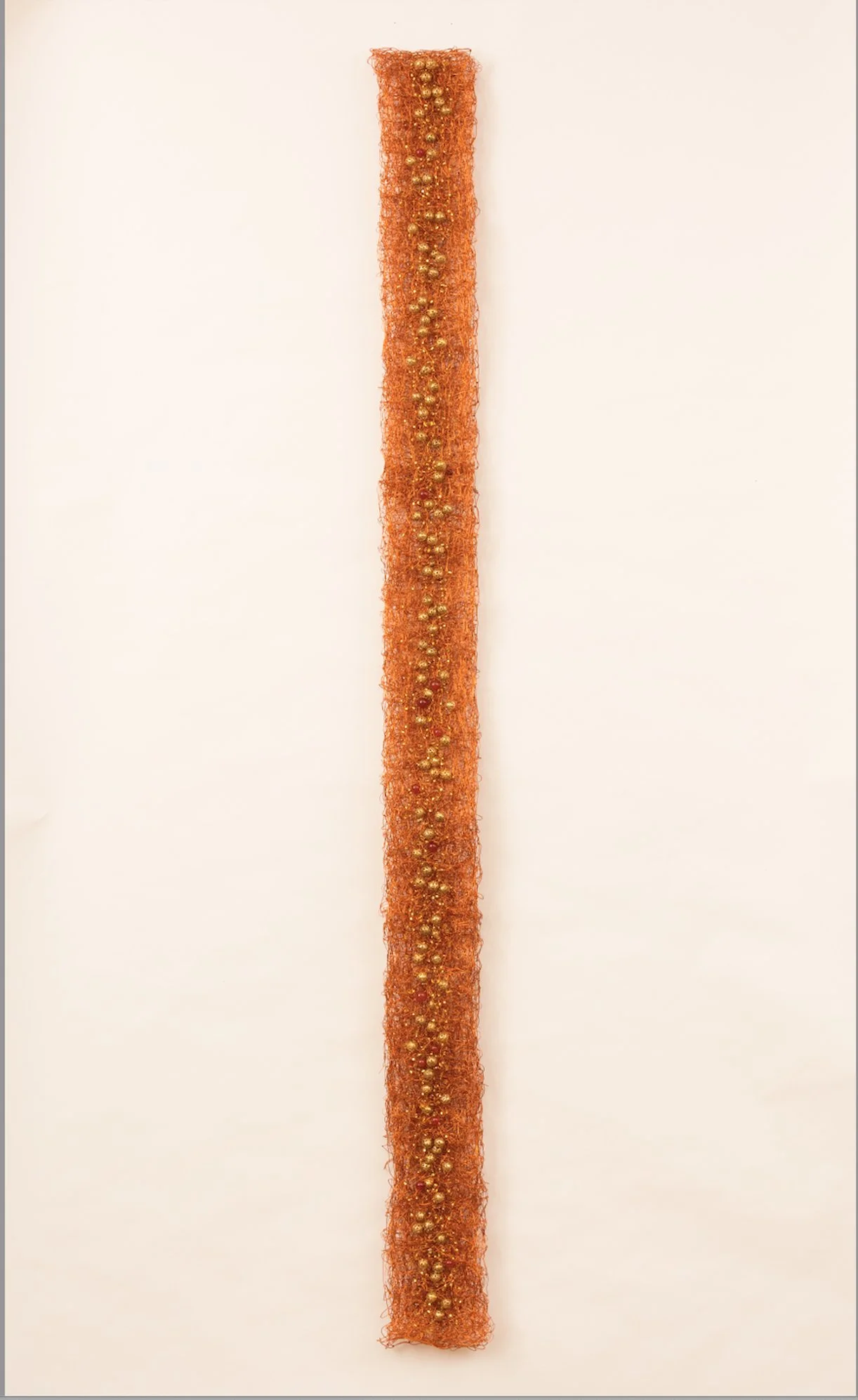 Koenigsberg’s wall pieces and installation works are woven, knotted, crocheted, or otherwise manipulated from various weights and colors of copper, steel, and aluminum wire. Woven or knotted grids are shaped and layered. Materials are shiny and dull, fragile, and industrial strength. The various combinations and contrasts challenge and engage the viewer both visually and conceptually.