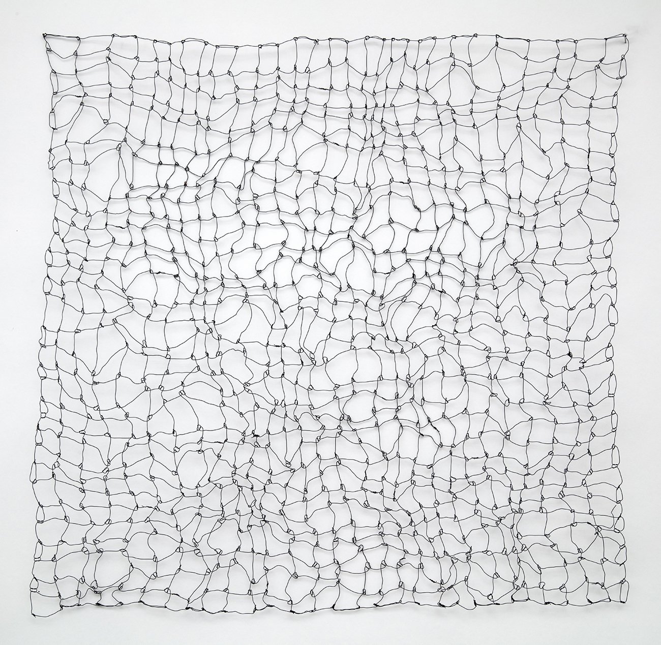 “I now use copper and steel narrow gauge wire and traditional forms of weaving and knotting to create two and three-dimensional structures and textiles. Even as I create my drawings in metal, I’m fascinated with the interlocking lines and the spaces they form.