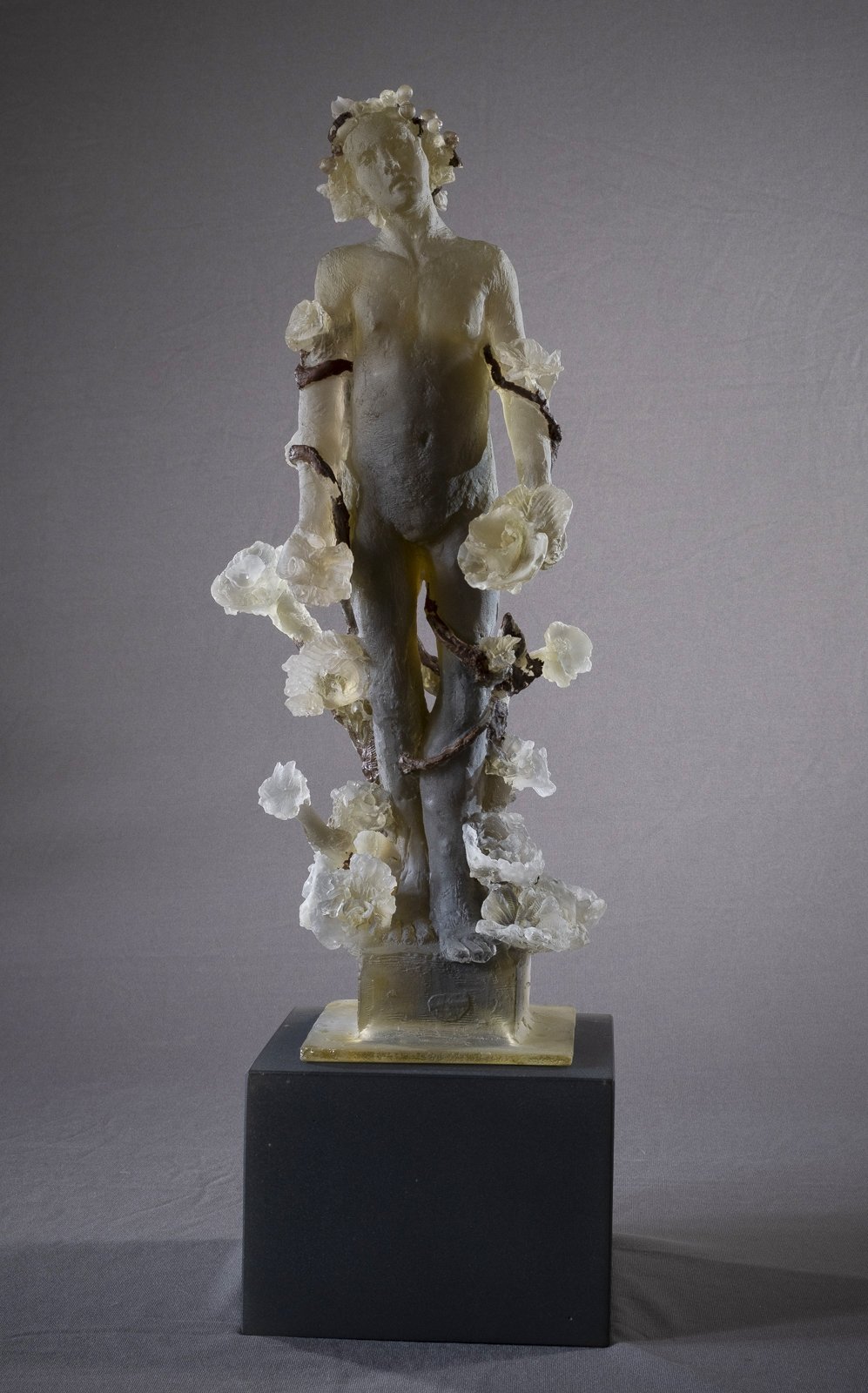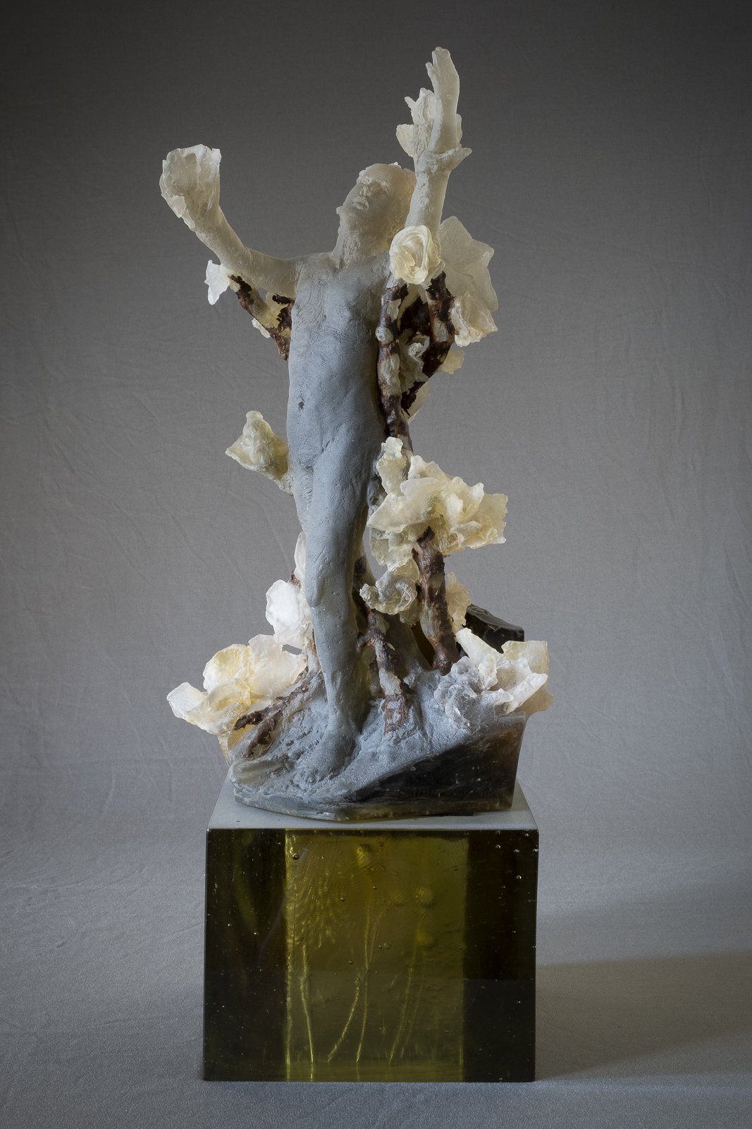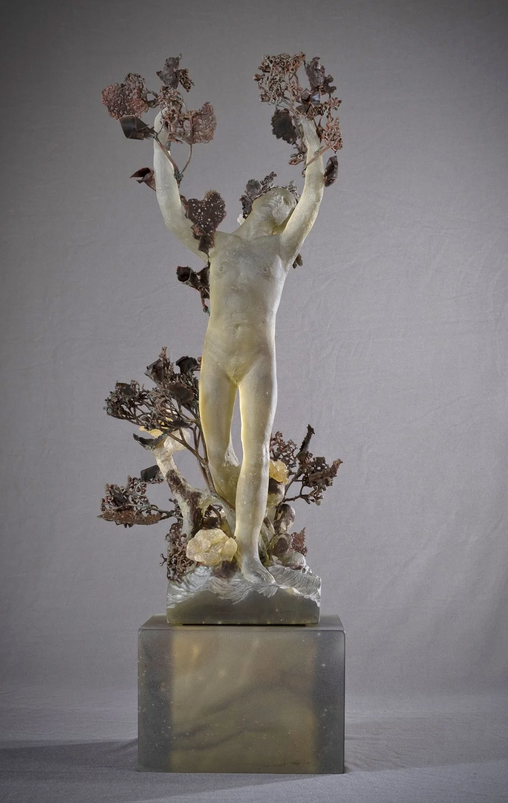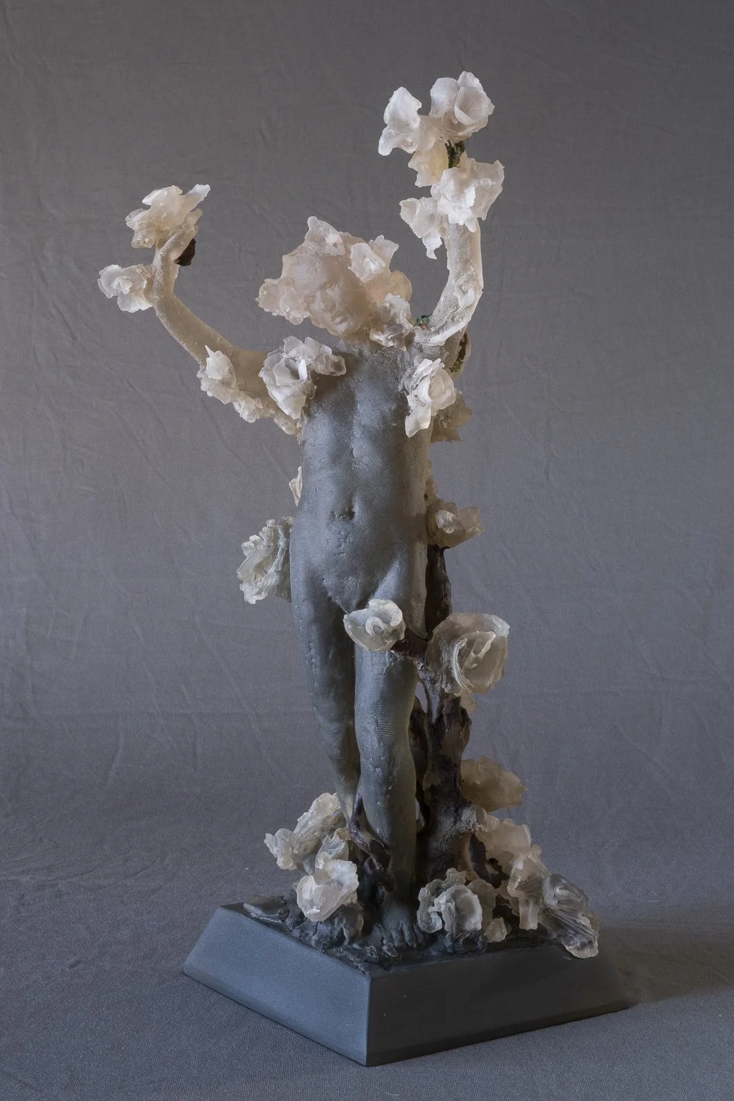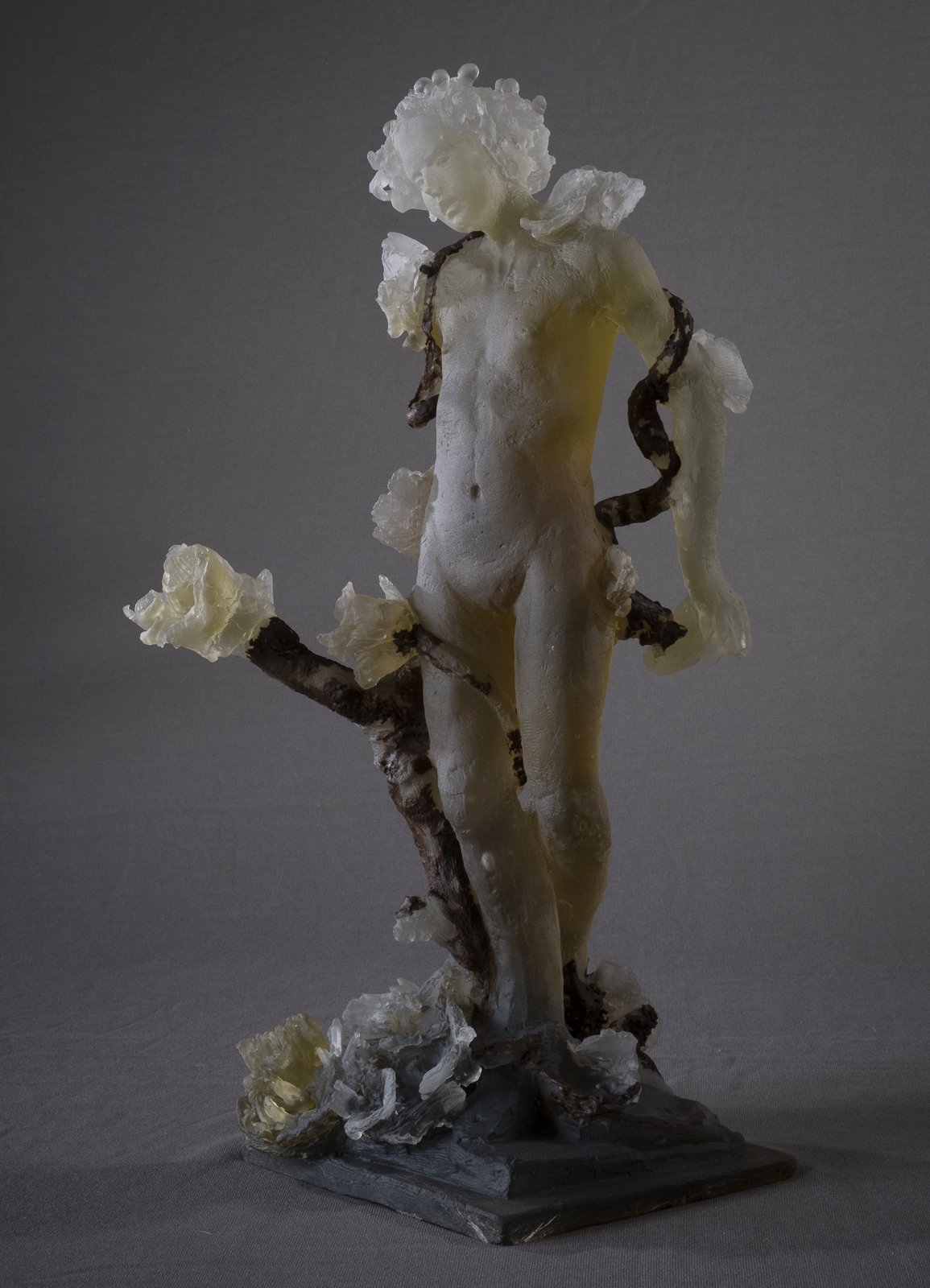 Ornamental Figures consists of eight cast-glass electroplated sculptures inspired by Daphne from Ovid's’ Metamorphoses. While drawn from a classical source, as are many of Africano’s influences, the work reflects themes of transformation and renewal that remain enduringly relevant.